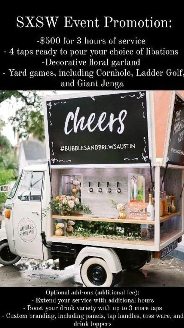 Doesnβt matter if itβs for your wedding, birthday, baby shower or corporate event, Austinβs residents and visitors appreciate the barsβ distinctive aesthetic and diverse selection of craft cocktails and local brews. So letβs get cozy ATX!! Contact us @Bubblesandbrewsaustin to be a part of your special day.