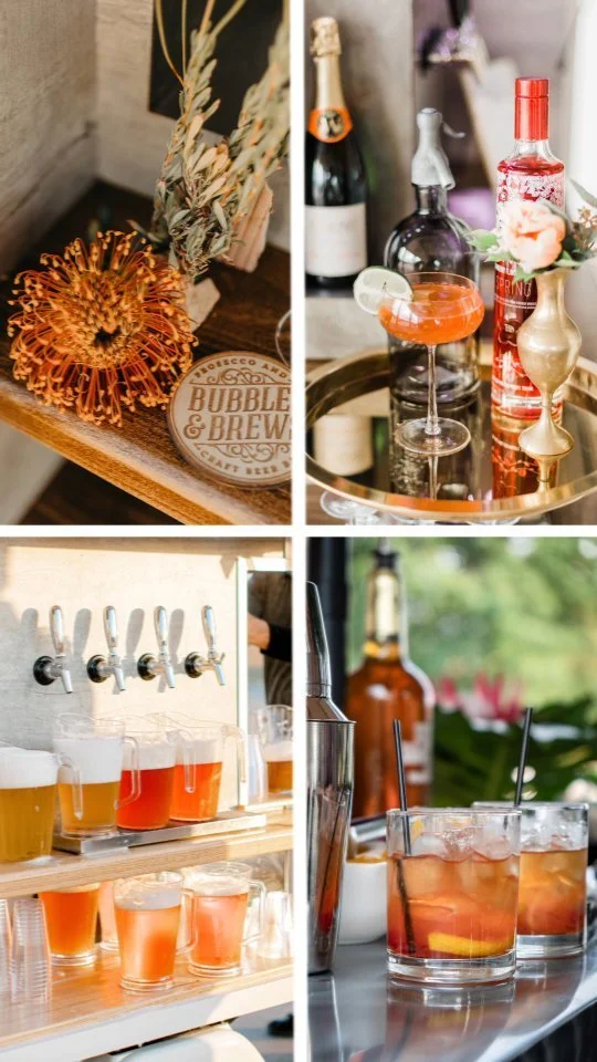 A mobile bar with up to 7 taps to pour perfectly chilled beer, prosecco, wine, signature cocktails, and non-alcoholic selections at your event. We also offer coffee and tea service, custom signage, custom tap handles, bar menus, cocktail toppers, and more.